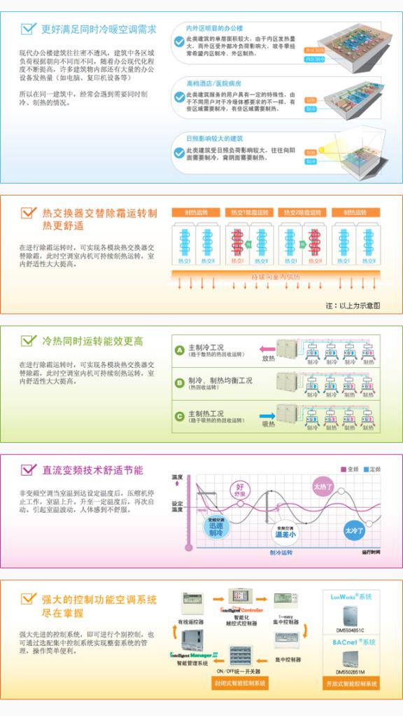 不斷升華的VRV 尖端技術(shù),實(shí)現(xiàn)同一系統(tǒng)中同時(shí)制冷、制熱,節(jié)能性及舒適性更高