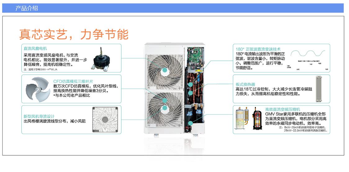 真芯實(shí)藝,力爭(zhēng)節(jié)能,室外機(jī)靜音運(yùn)行,安靜室內(nèi)環(huán)境,變頻技術(shù),不忽冷忽熱,除濕再熱,隨身感溫,安裝便利