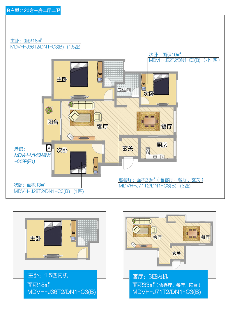 型號: Midea/美的MDVH-V140W/N1-612P(E1)一拖四
